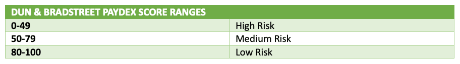 D&B has its PAYDEX score on a scale of 1-100 with the highest scores indicating a lower risk of late payments.